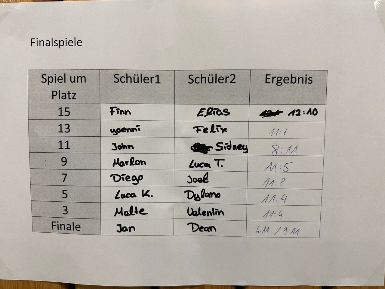 In den Finalspielen wurden die Platzierungen der Schüler ermittelt (siehe Bild 2.)!
